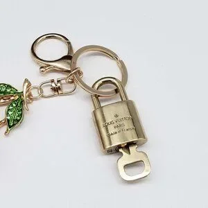 The Louis Vuitton padlock and key are authentic, while the additional keychain charm is unbranded and included for styling purposes.