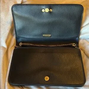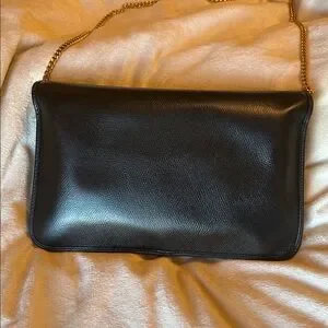 This gorgeous Christian Dior bag features elegant grain leather and a stylish gold chain. It has a sleek design and interior has the classic honeycomb pattern. Chain can be tucked inside to use as a clutch. The bag is in excellent vintage condition. It has small crack on either side where flap folds over (see picture) and button was replaced (see picture). Overall, this is a beautiful Dior bag. 10” x 6.2” x 1.3”