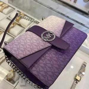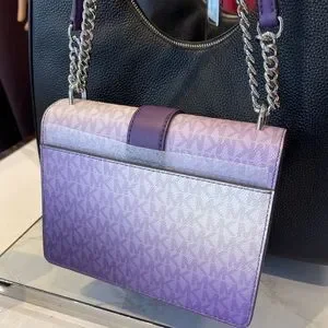 MICHAEL KORS Greenwich Md Ombré Signature Logo Tri-Fold Wallet Dark Purple Multi