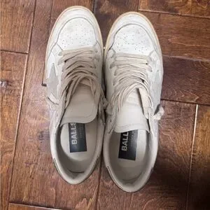Elegant Golden Goose sneakers with a cream and white color scheme. Ideal for everyday style. Does not come with box or duster .