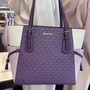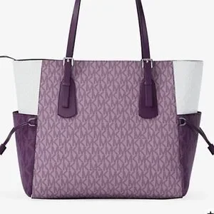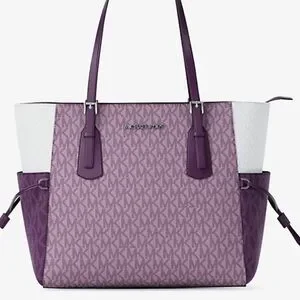 MICHAEL KORS Voyager Large Color-Block Signature Logo Shoulder Tote Dark Purple