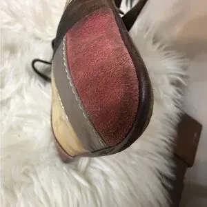 Chic crossbody with a patchwork design. Features a blend of gold, brown, and pink tones. Ideal for a stylish look.
