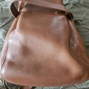 vtg bucket bag thick brown leather brass hardware does have damage see pics