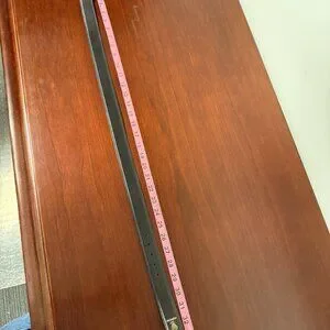 @fashioncatalog Hello. Thank you for asking. I’m believe the last shows the inches. If a bad pic, my apologies. It’s about 27.5 inches to the last hole. Additional holes can be added by a cobbler.