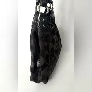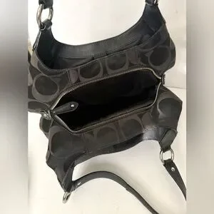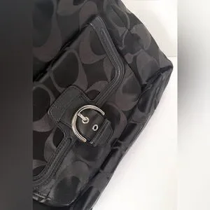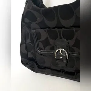 Coach Signature Canvas Campbell Leather Shoulder Bag Hobo Buckle Pocket Y2K.