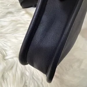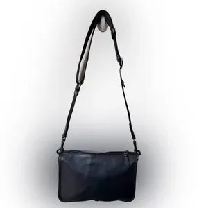 Detachable strap with 22" drop for shoulder or crossbody wear. Removable hybrid pouch Outside open pocket. 9 3/4" (L) x 6 1/4" (H) x 2" (W). Smooth calf leather.