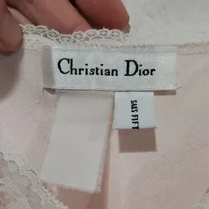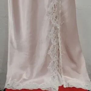 Vintage Christian Dior Elegant Pink Satin Nightgown With Asymmetrical Lace & Bow