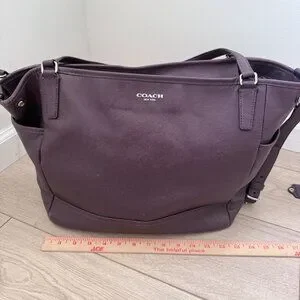 Coach Women's Bag Eggplant Purple Leather Straps Baby Diaper Bag Travel 26353