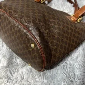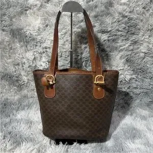 Stylish Celine tote with a dark brown pattern. Features leather straps and gold-tone buckles.Bag is Preloved with signs of usage,stains and scratches