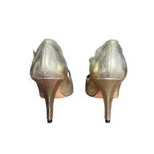 Vintage YSL Gold Metallic Python Embossed Leather Stiletto Mary Jane Pumps 7.5M