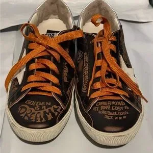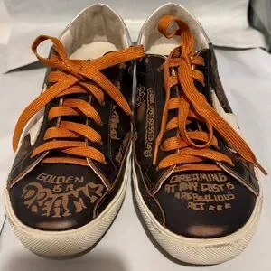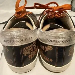 Golden Goose SUPER STAR BIKER LEATHER SNEAKERS DRAWING DARK BROWN.