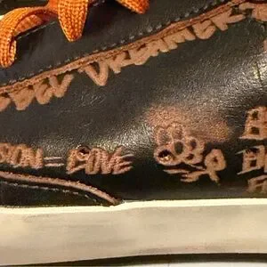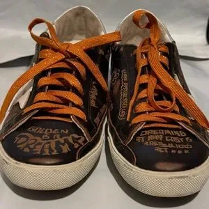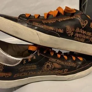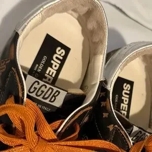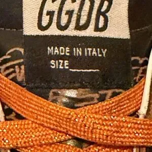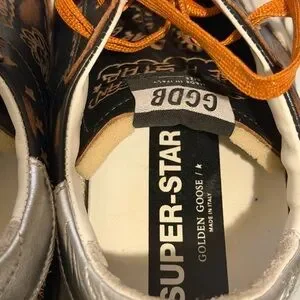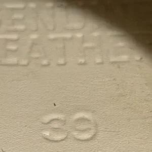 Golden Goose leather detail in cream. Embossed texture with number 39.