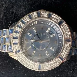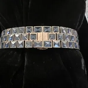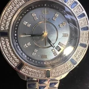 Elegant Dior Christal Collection watch. Christal band with stainless steel. Featuring Quartz Movement with Date Complication. Diamond, Unidirectional Rotating &Gemstone Sapphire’ Bezel. Mother of pearl Dial. Butterfly Clasp. Stylish and sophisticated. Watch Height : 10mm. Diamond carat weight 0.58 . Stone count: 97. Stone Shape: Round Brilliant , Color Grade: Near Colorless. Clarity Grade: Very Slightly Included.