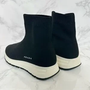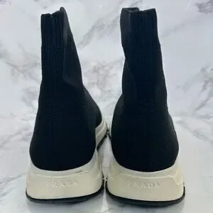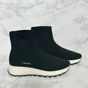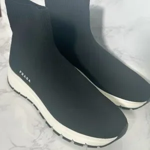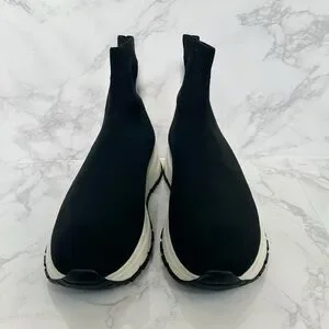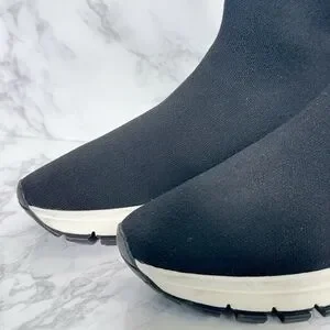 Elegant black stretch knit sock sneakers with a white sole. High-top design for a modern look and fits ankle perfectly, very light and comfy to wear. Ideal for everyday style and casual look. I have only worn this a few times, like new. I dont have the box anymore, will ship in another shoe box.