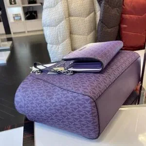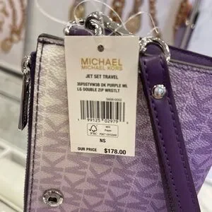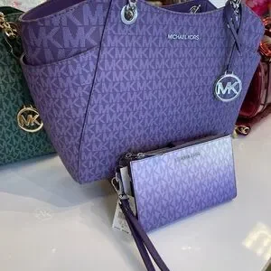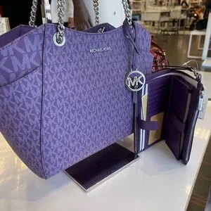 MICHAEL KORS JST Lg Chain Shoulder Tote & Double Zip Wristlet Wallet Dk Purple