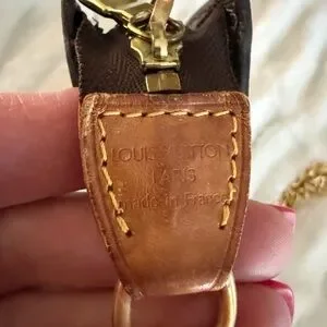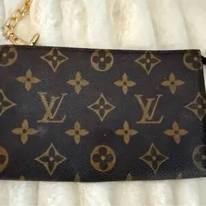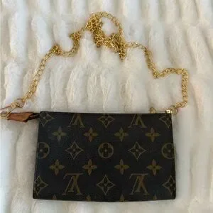 Chic Louis Vuitton clutch Pouchette with aftermarket gold chain. This is in good used condition with the exception of the one side of the pouch looks a little worn. It’s beautiful inside. Will come with the Louis Vuitton box and dust bag. This measures 6 3/4 inches by 4 inches. Authenticated by Real Authentication.