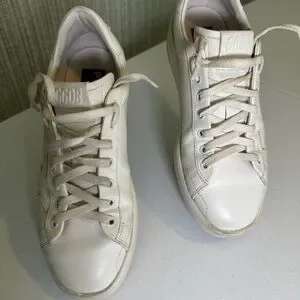 Golden Goose Purestar (GGDB/PURE) White Leather Sneakers, Size 9.5