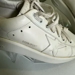 Golden Goose GGDB/PURE white leather low-top sneakers (often listed as the Purestar). Clean, classic, and goes with literally everything. Tonal star detail and “GGDB/PURE” stamp on the side.