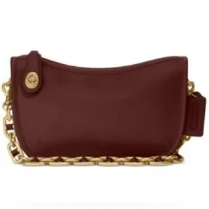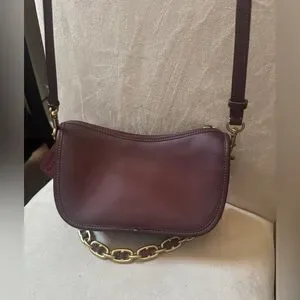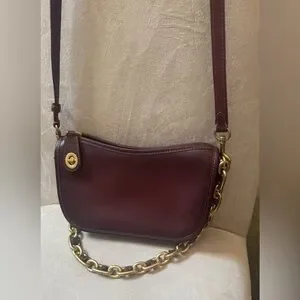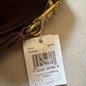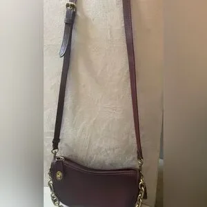 New with tag. Color is called wine. All leather construction. Top zip closure with twist lock. Two strap options. One can be removed if desired. Longer leather strap is adjustable & crossbody length. Msrp $350.00. Attached tag not in perfect condition. Dust bag included.