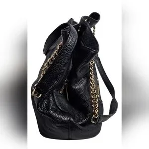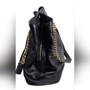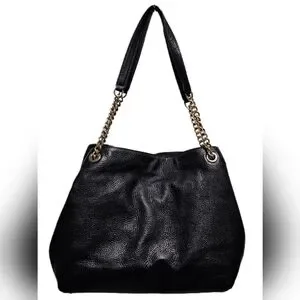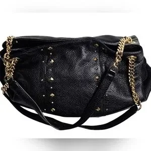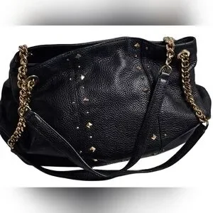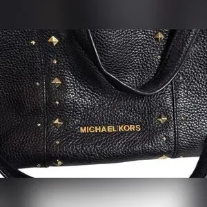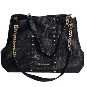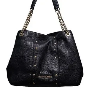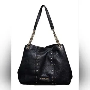 Michael Kors Jet Set Studded Leather Black Handbag Shoulder Tote Travel Bag Chic