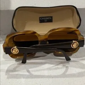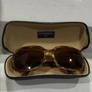 CHANEL Italy Vintage Tortoise Shell light Honey color Sunglasses 🕶️ & hard Case