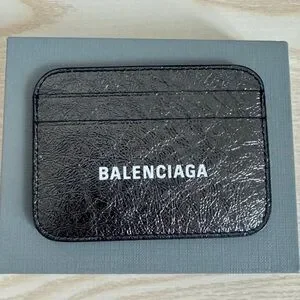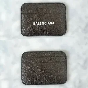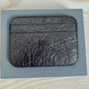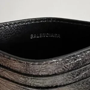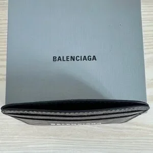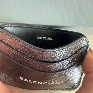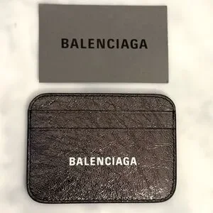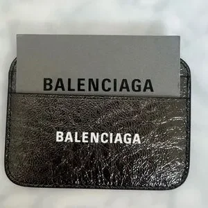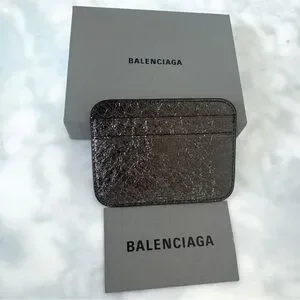 BALENCIAGA LOGO Metallic Silver Leather Credit Card Cash Cardholder Wallet NEW