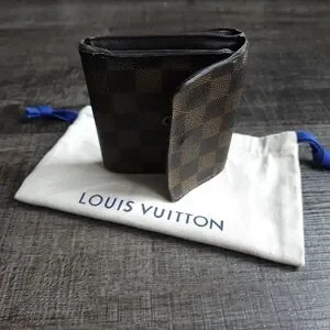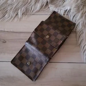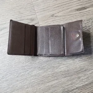 Unisex Designer wallet by Louis vuitton. Brown damier ebene leather. Shows wear to corners seen in photos. Inside pockets have wear also can be seen in photos.