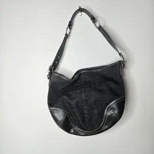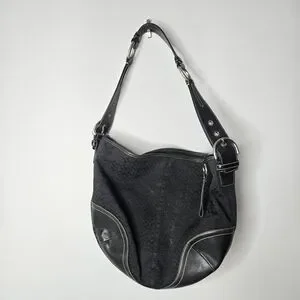 Coach Black Signature Jacquard Leather Trim Hobo Shoulder Bag A05N-1461