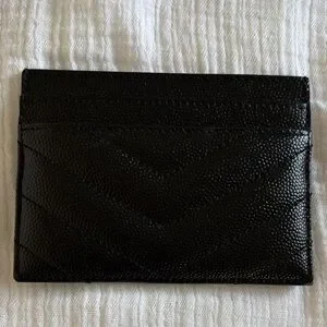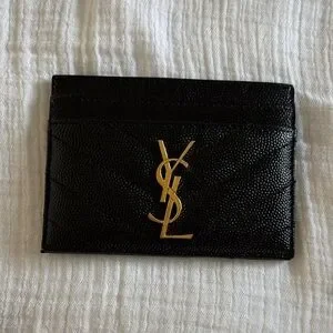 Chic Yves Saint Laurent Cassandre card holder. Features iconic gold logo on black leather. Ideal for stylish organization. In excellent condition. No signs of wear and tear. Very light scratches on hardware. Comes with original dust bag and box.