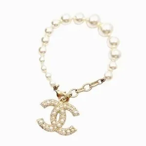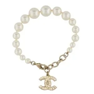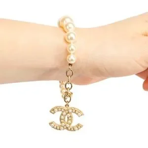 Chanel Gold CC Pearl Pendant Pearl Bracelet! Full Set
