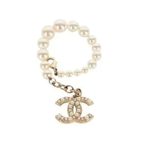 It is made of pearls in different sizes with dangling CC logo encrusted with pearls and crystals