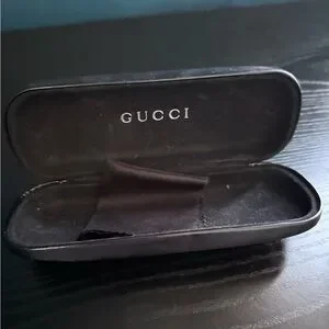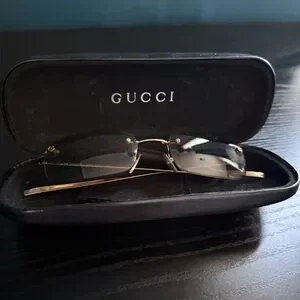 Stylish Gucci rimless eyewear with sleek gold details. Includes a Gucci case.