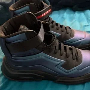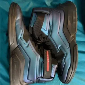 Prada Polarius Futuristic Black Iridescent High Top Sneakers Men's Size 12