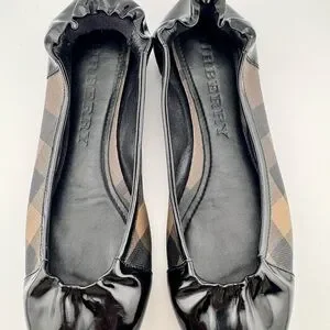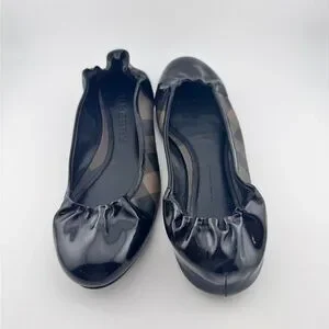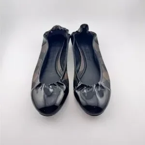 Burberry Nova Check Patent Leather Women's Black & Brown Checkered Ballet Flats