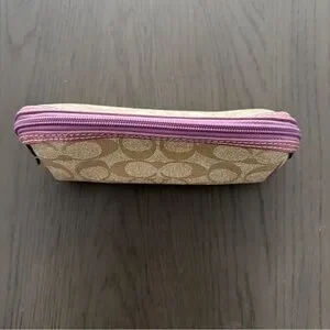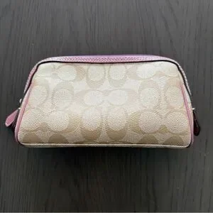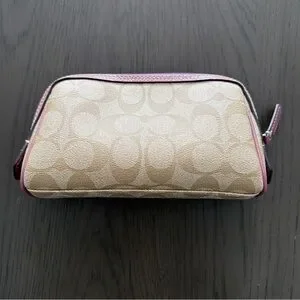 Coach Signature Cosmetic Pouch – Tan PVC | Small Zip Case | Excellent