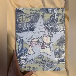Elegant Dior accessory set. Features intricate blue and cream design. Perfect for adding a touch of luxury.