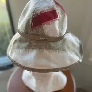 Burberry Beige and Red Bucket Hat