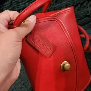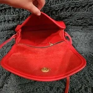 This elegant red leather women's bag is perfect for any occasion. Its sleek design and vibrant color make it a standout accessory. Push lock works just fine.