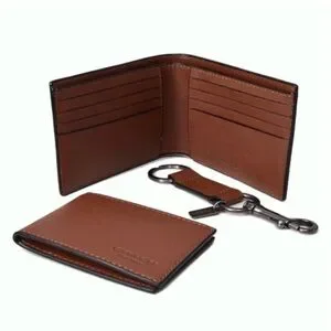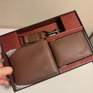 Coach Men's Compact ID Sport Leather 3-in-1 Wallet Gift Set Dark Saddle F64118