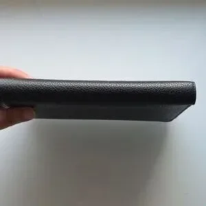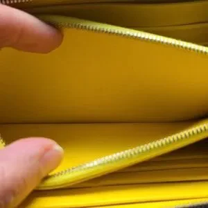 Black Leather Wallet with Yellow Interior and Silver Hardware
