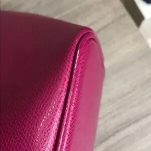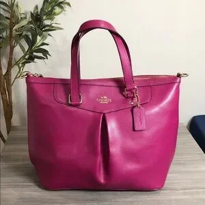 Vibrant fuchsia leather tote by Coach. Perfect for chic outings.