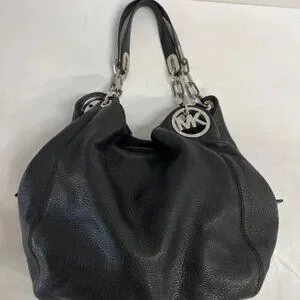 This Michael Kors hobo bag combines practicality and style, featuring durable pebbled leather, a spacious interior, and elegant silver-tone hardware for everyday use.