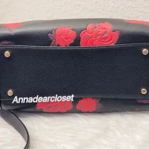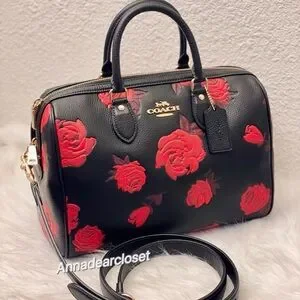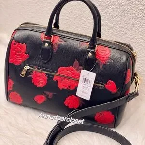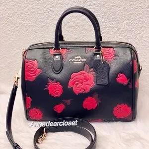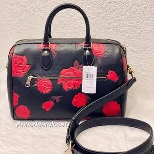Coach Rowan Large Satchel Bag With Floral Print CCE27 in Black/Red