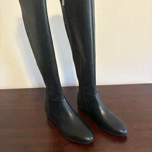 NIB Michael Kors BROMLEY Faux Leather Flat Boot Over the Knee Black 6M