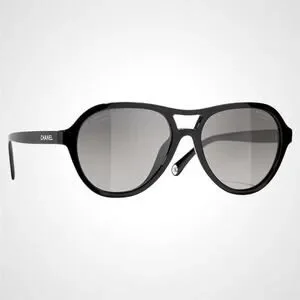 New CHANEL Sunglasses Black Polarized Lens Pilot Aviator 55mm
