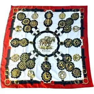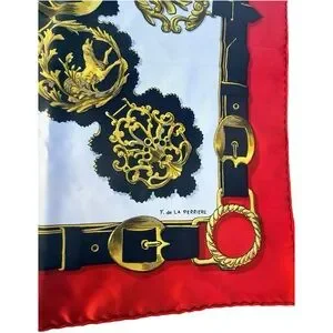 Hermes Black and Gold Equestrian Scarf 35x35”