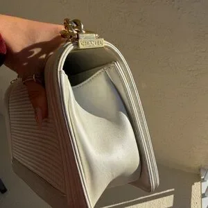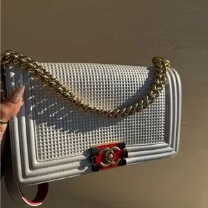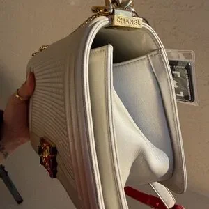 Chanel White Cube Medium Boy Bag Shoulder Bag with Gold Chain