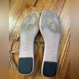 Pre owned overall excellent condition worn a handful of times. The only flaw is the leather coming up on the strap between toes (pictured). It will need to be glued. All beads are in tact and bottoms have very minimal wear. WOMENS size 8.5.