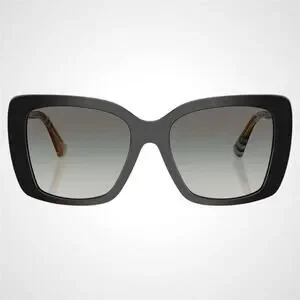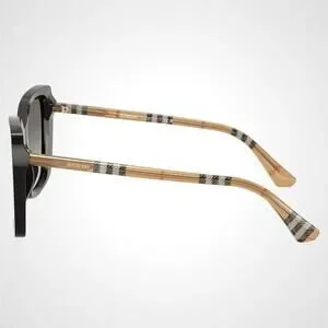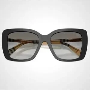 New Burberry Sunglasses Black Front Square Frame Checkered Arms Gray Lens Womens