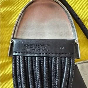 Made in Italy. Elegant 100% goat leather black belt featuring silver details. Includes a vibrant yellow dust bag.